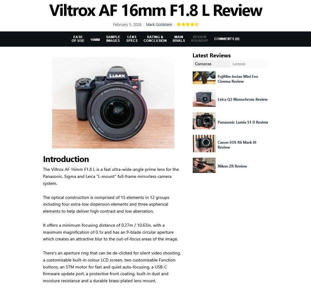 PhotographyBlogが「VILTROX AF 16mm F1.8」ライカLマウント用のレビューを公開。周辺減光は補正が必要としつつ、堅牢性、機能性、画質、価格のバランスに優れ、コストパフォー ...