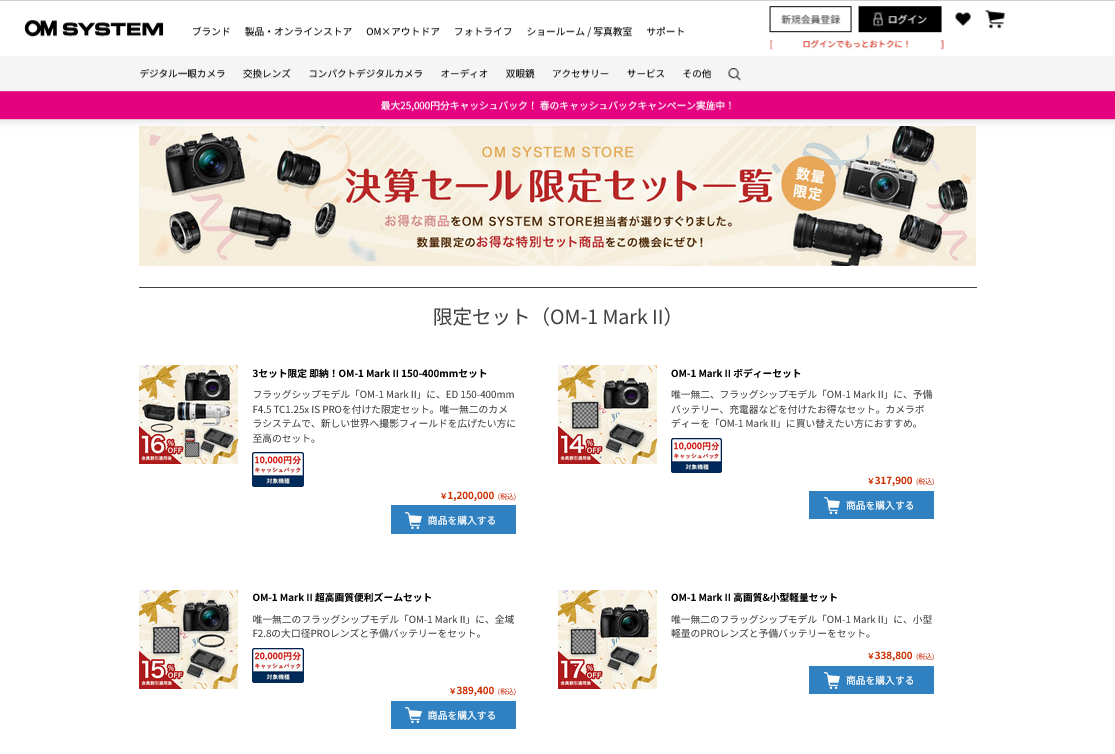 OM SYSTEM ストアが決算セール限定セット販売や店内10%オフクーポンを配布中