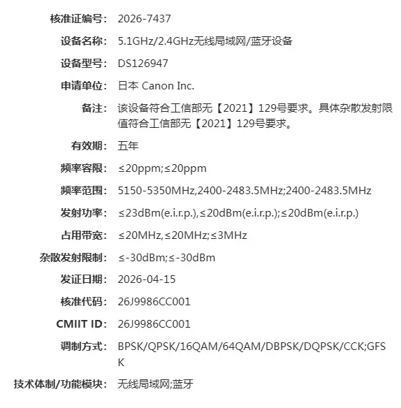 2026/4/17 Canon info