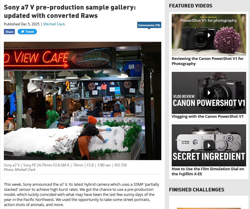 DPReviewがα7 Vのサンプルギャラリーを公開
