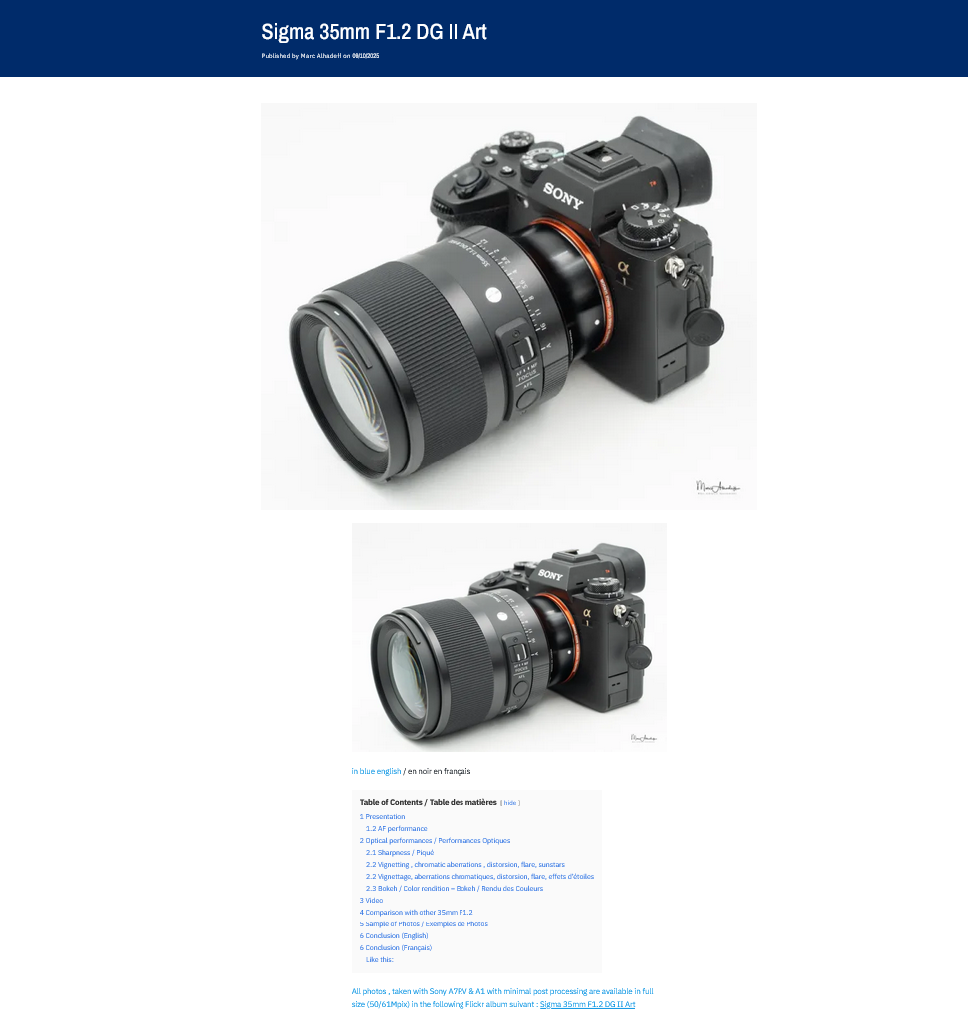 Sony Alpha Blogが「35mm F1.2 DG II」のレビューを公開。より軽量・コンパクトになりながら高い性能を維持。全体として非常に完成度が高く、強く推奨できると評価。