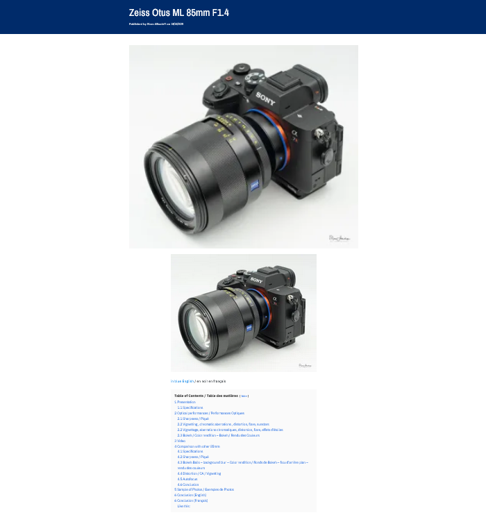 Sony Alpha Blogが「Otus ML1.4/85」のレビューを公開。良好なビルドクオリティや光学性能を評価しつつ、価格を考慮すると性能は物足りないと言及。強力な競合製品が多いみたいですね。