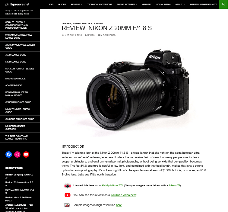 Phillipreeveがニコン「NIKKOR Z 20mm f/1.8 S」のレビューを公開。開放から高い描写性能を発揮し、特にコマ収差や逆光耐性は非常に優秀。歪曲収差や周辺減光といった弱点はあるも ...