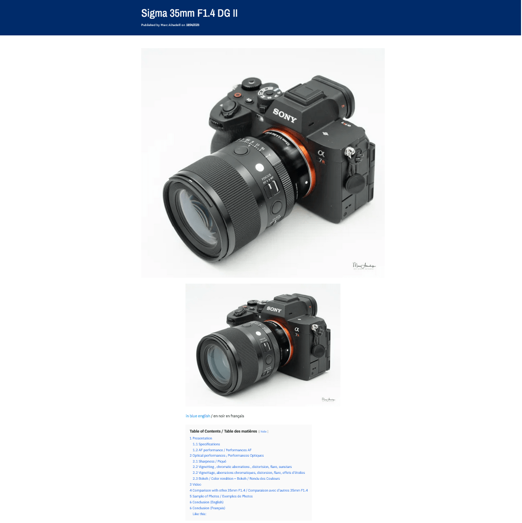 Sony Alpha Blogが「35mm F1.4 DG II」のレビューを公開。優れた解像性能と滑らかなボケを備え、ソニーGMと同等クラスの実力を低価格で実現していると評価。