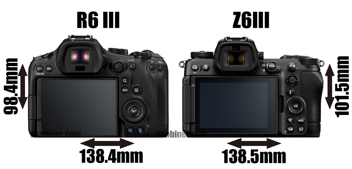 「EOS R6 Mark III」と「Z6III」の外観やスペックの違い