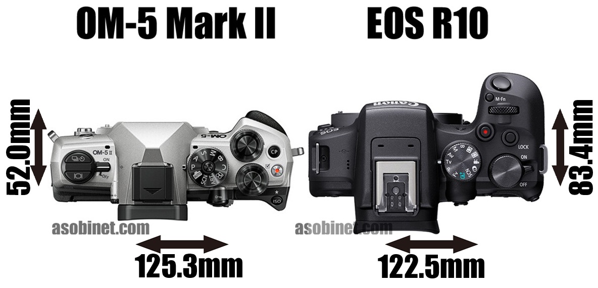 - 「OM-5 Mark II」と「EOS R10」の外観やスペックの違い