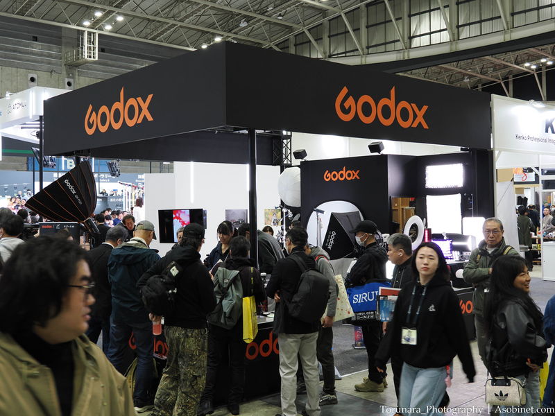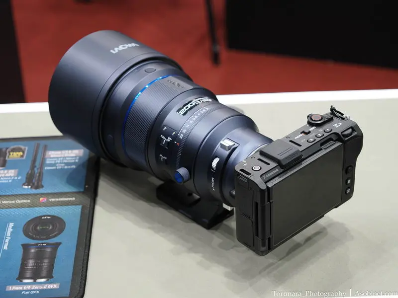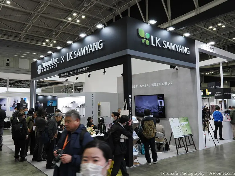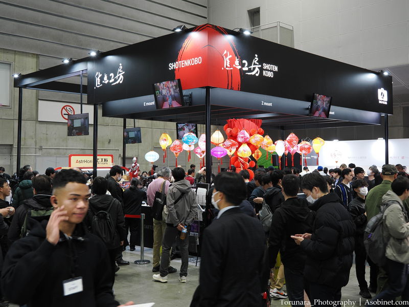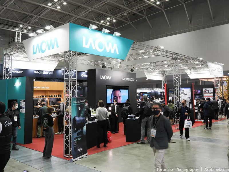LAOWA AF 200mm F2 や 90mm F2.8 MFTの体験コーナーあり。サイトロンブランドの製品も多数。