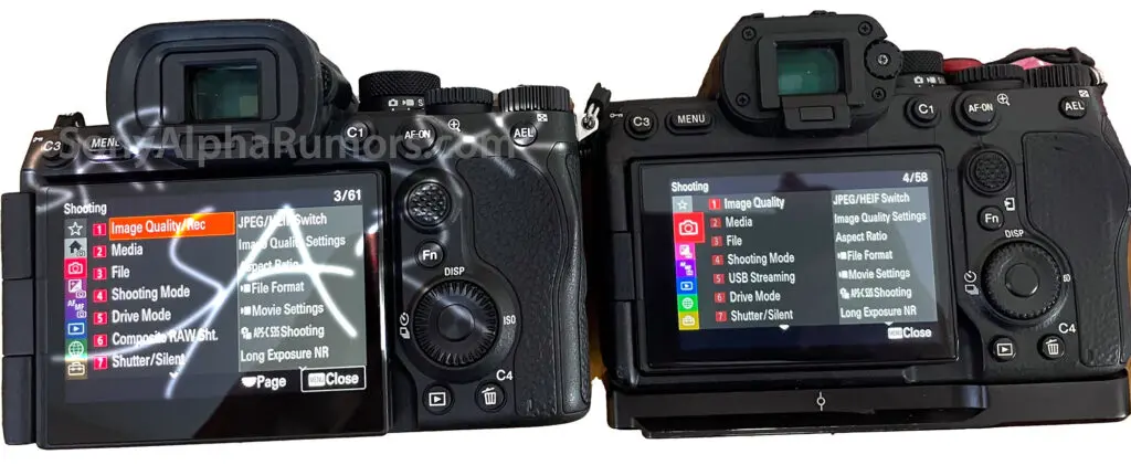 Sony Alpha Rumorsがソニー関連の噂情報を発信。近日登場と噂の「α7 V」について、α7 IVと背面を比較した画像を入手したようです。メニュー画面が写っており、従来と比べて少し変化があるみたいですね。