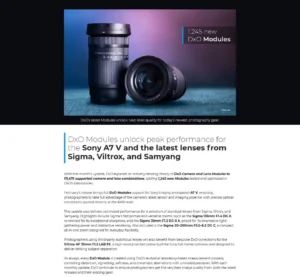 DxOが自社のソフトウェアで利用可能なカメラ・レンズの光学モジュールを追加。「α7 V」に完全対応、レンズも「135mm F1.4 DG」「20-200mm F3.5-6.3」「VILTROX 135mm/35mm LAB」などに対応した模様。