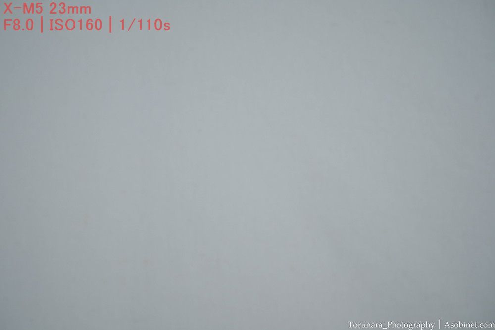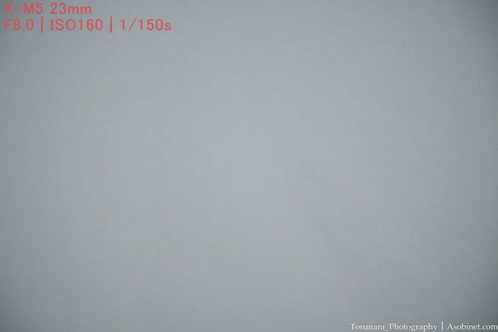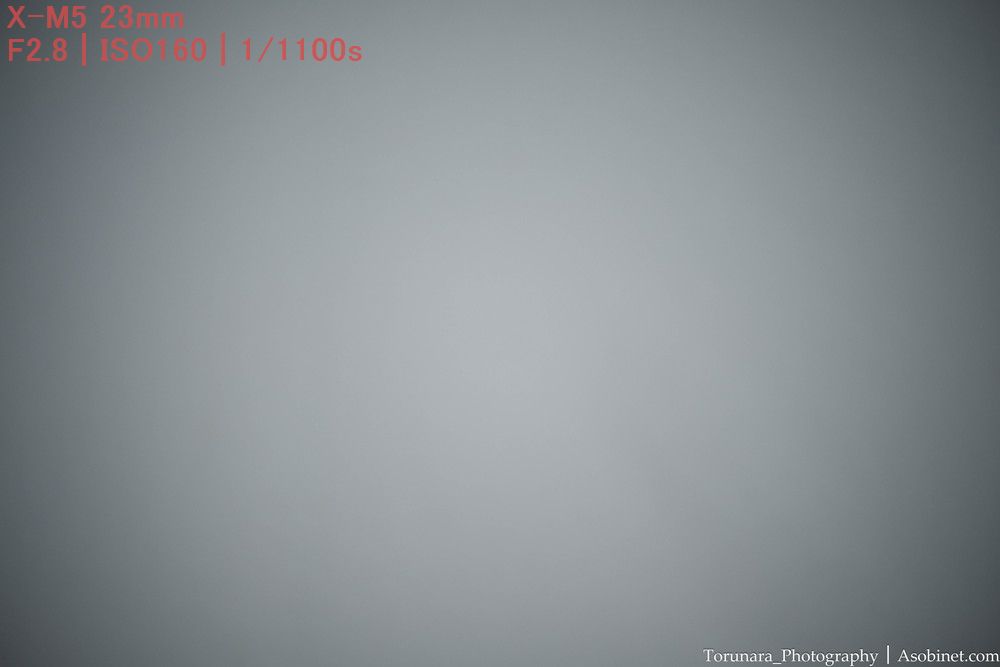 レンズ補正をオフにした場合、広い範囲で薄っすらと影響のある減光が発生します。これは2段ほど絞ると改善。