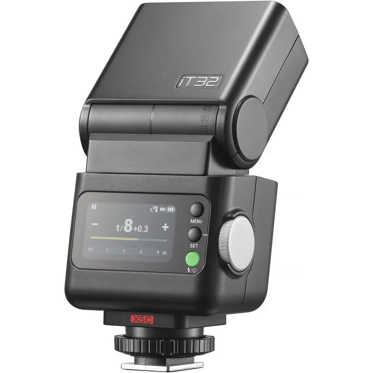 - 異なるX5バージョンと組み合わせることで、1台のiT32フラッシュボディがキヤノン、ニコン、ソニー、フジフィルム、OMシステムのカメラにシームレスに対応。