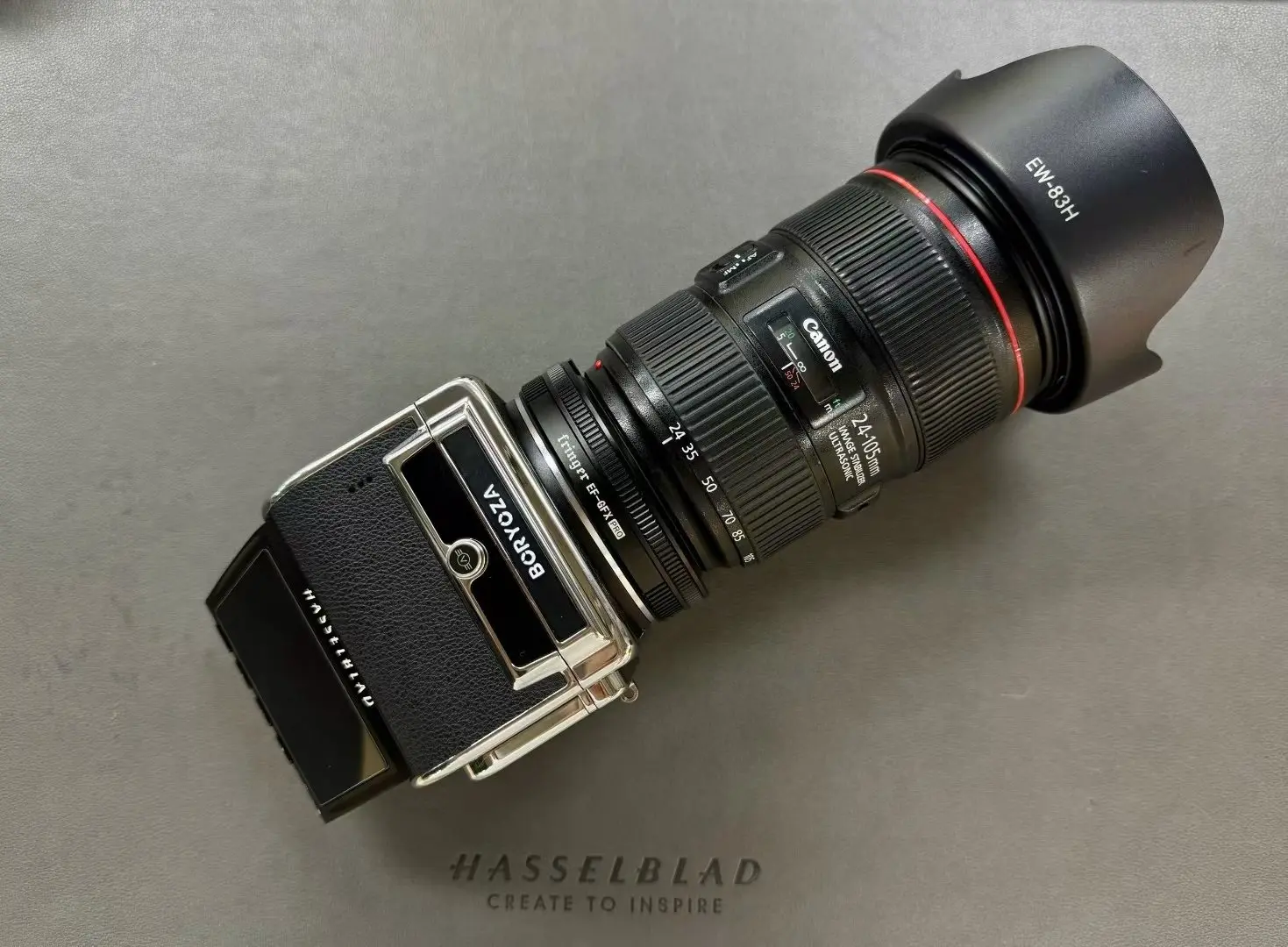 (ただ、このような使い方ならば、HasselBlad X → Canon EF アダプターTCX-01が適した選択肢。)