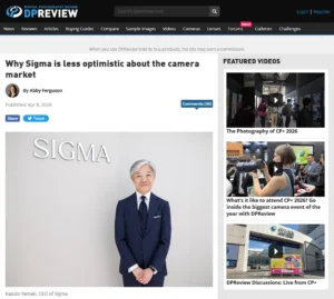 DPReviewがCP+におけるシグマへのインタビューを記事として公開。市場の冷え込みと新しいアプローチの重要性、内製重視を継続するが利益率の低下、APS-Cについて、BFによる新規ユーザー層の獲得、Foveonの進捗など。