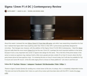 Dustin Abbott:Sigma 12mm F1.4 DC | Contemporary Review