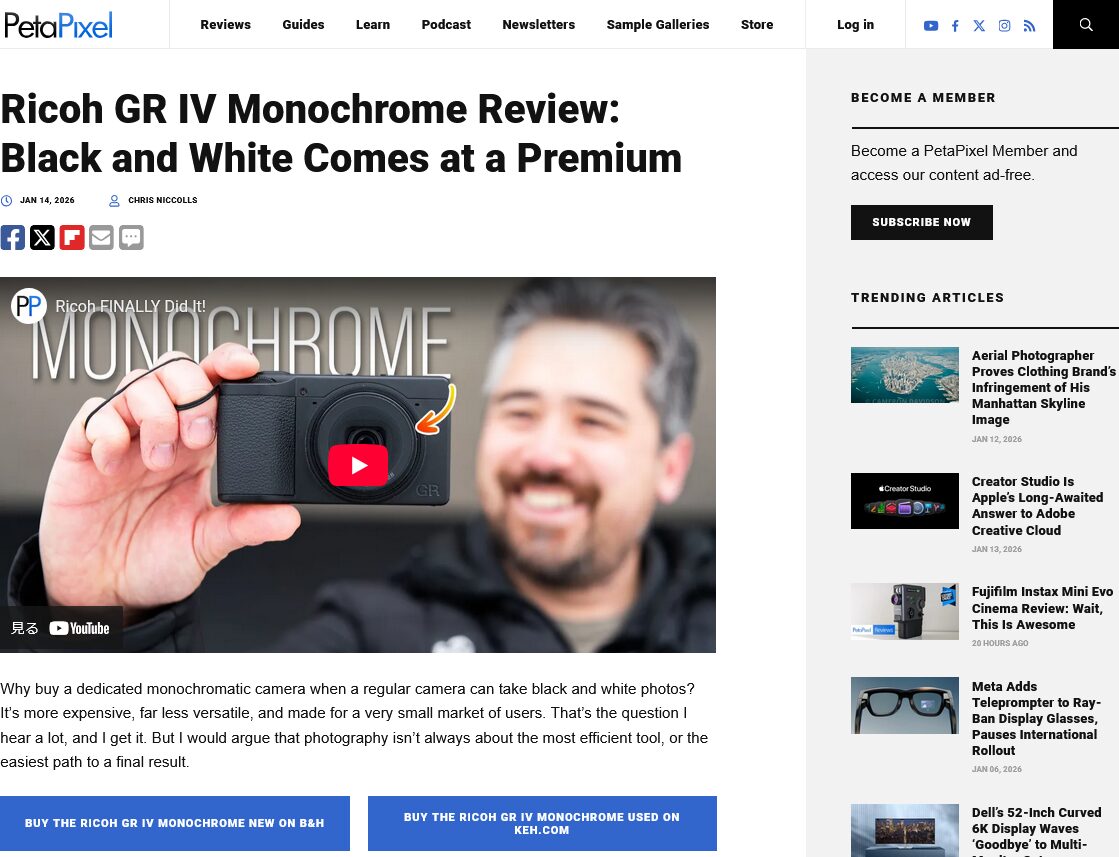 - RICOH GR IV Monochrome 正式発表