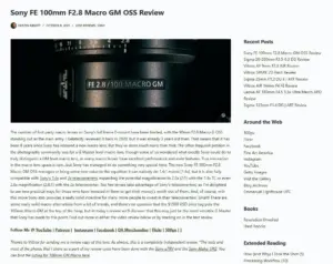 Dustin Abbottがソニー「FE 100mm F2.8 Macro GM OSS」のレビューを公開。玉ボケの口径食が強いと指摘しつつも、他はほぼ全ての点でトップクラスと高く評価。最高のマクロレンズと言及。