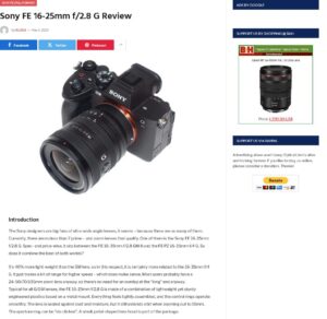 - 総評:ズーム全域で高性能を維持し、中央は非常にシャープ、周辺も良好。16mmではGMレンズより歪曲と周辺減光が大きいが、自動補正で軽減可能。倍率色収差は非常に低く、光条の描写も優秀。構造品質はG/GMズームと同等で、防塵防滴仕様、AFも高速・静音。伸縮式ズームだが携帯性に優れる。人気は高くないが、性能と価格のバランスに優れる実用的な広角ズームである。