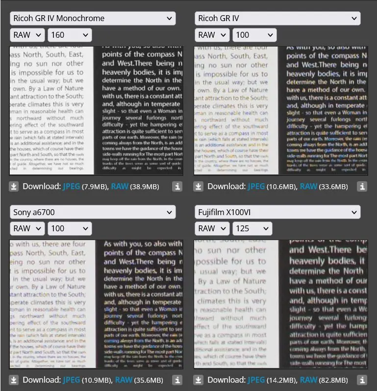 DPReviewのレビューによると、モノクロセンサーらしく、良好なディテールの表現と低照度性能のようです。白飛びすると復元できない点に気を付けておけば、柔軟性の高いRAW現像ができそうですね。4000万画素のX100VIよりも明らかにシャープと言及しており、サンプルを見る限り確かに良好な結果が得られています。