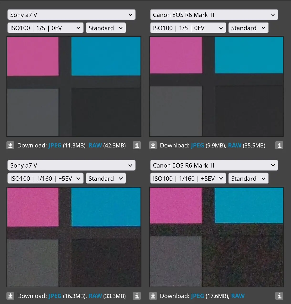 DPReviewが「α7 V ILCE-7M5」をスタジオシーン比較ツールに追加。特にメカニカルシャッター時はRAW現像の柔軟性が高く、R6 Mark III や Z6III よりも暗部を(圧倒的ではないものの)快適に復元でき、LUMIX S1IIと同等であるとのこと。