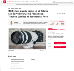 PCmagがOM SYSTEM「M.ZUIKO DIGITAL ED 50-200mm F2.8 IS PRO」のレビューを公開。高価なマイクロフォーサーズ用レンズですが、同システムでトップクラスの解像性能と評価。予算が許すのであれば最良の選択肢とのこと。