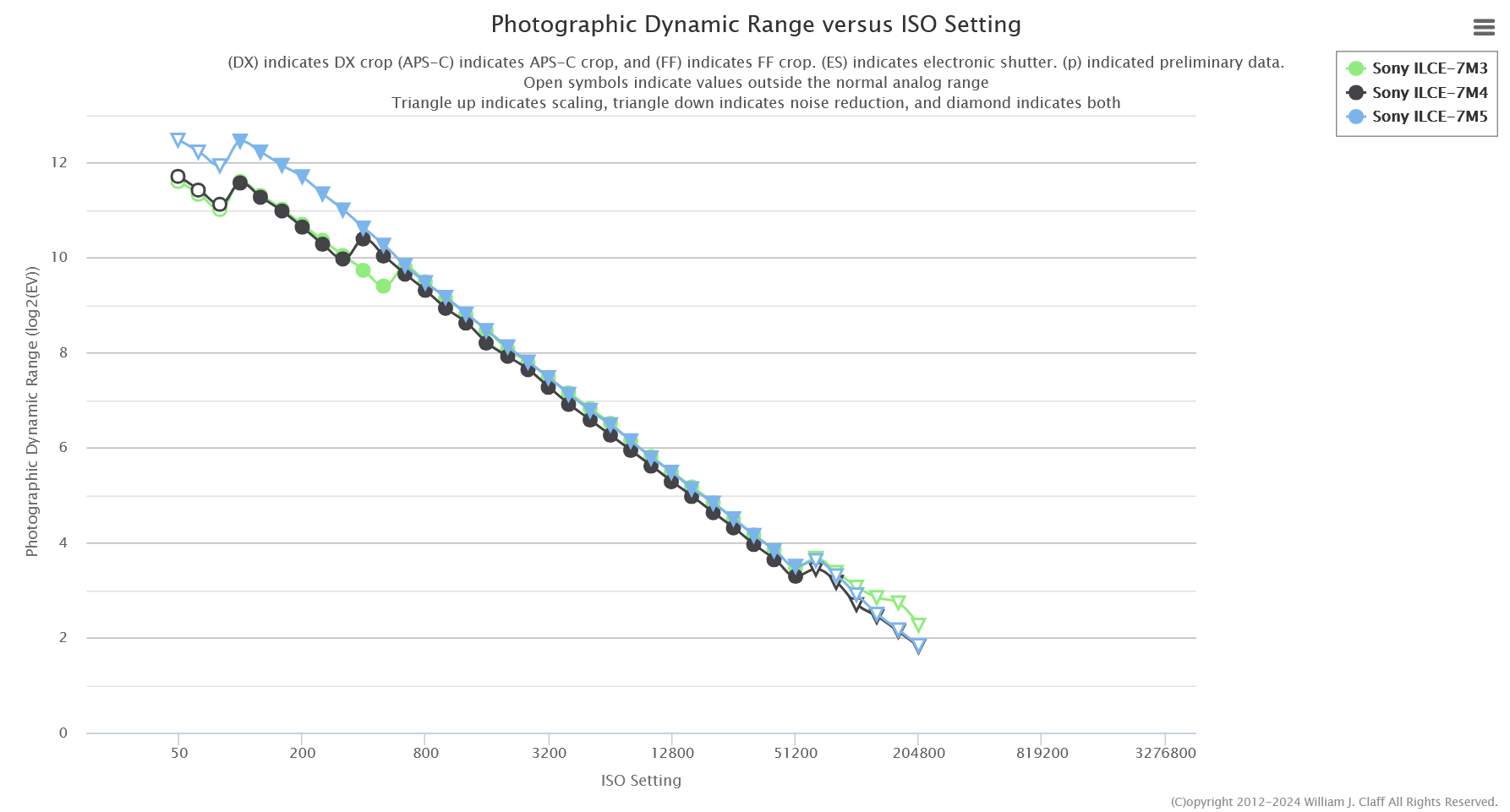 Photons to Photosが「α7 V ILCE-7M5」のダイナミックレンジテストの結果を公開。競合他社やα7シリーズの中で抜群の数値となっていますが、ISO全域でノイズリダクションの痕跡が見られる模様。