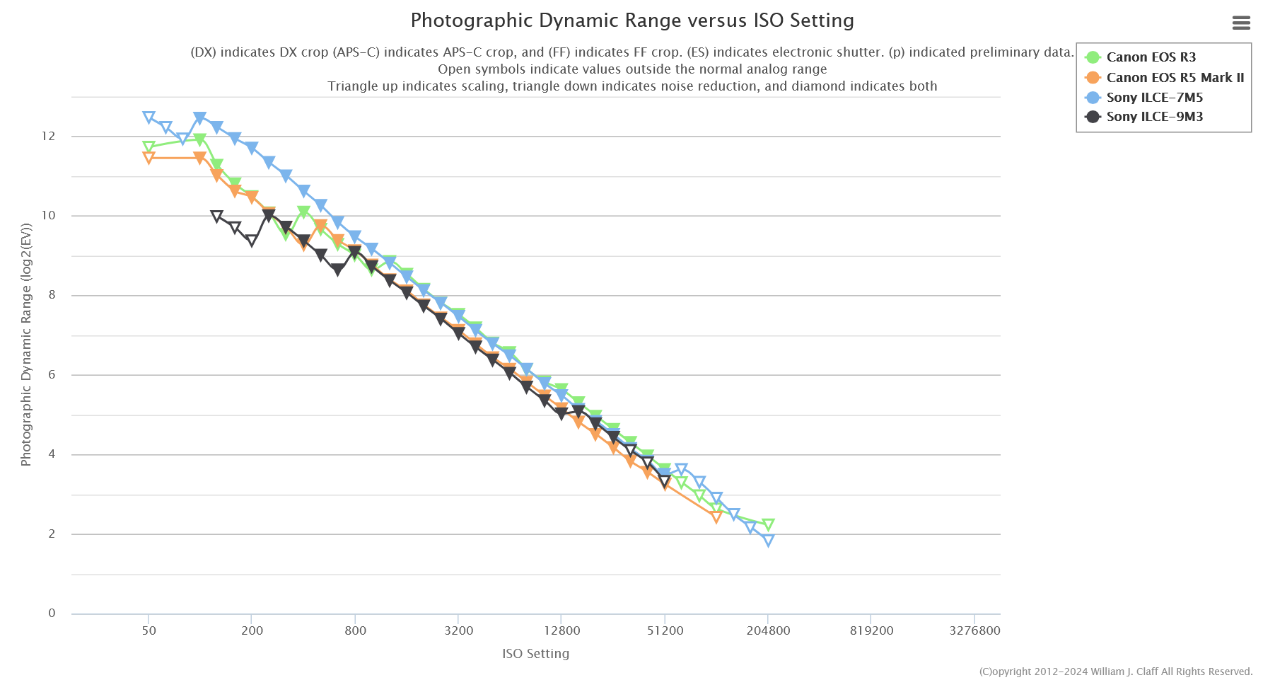 Photons to Photosのテスト結果によると、ISO全域でノイズリダクション(NR)の兆候があるようです。この傾向はα9 IIIと同じで、現時点でRAWに適用されるNRを解除することはできません。