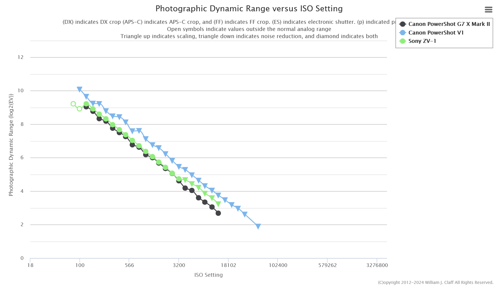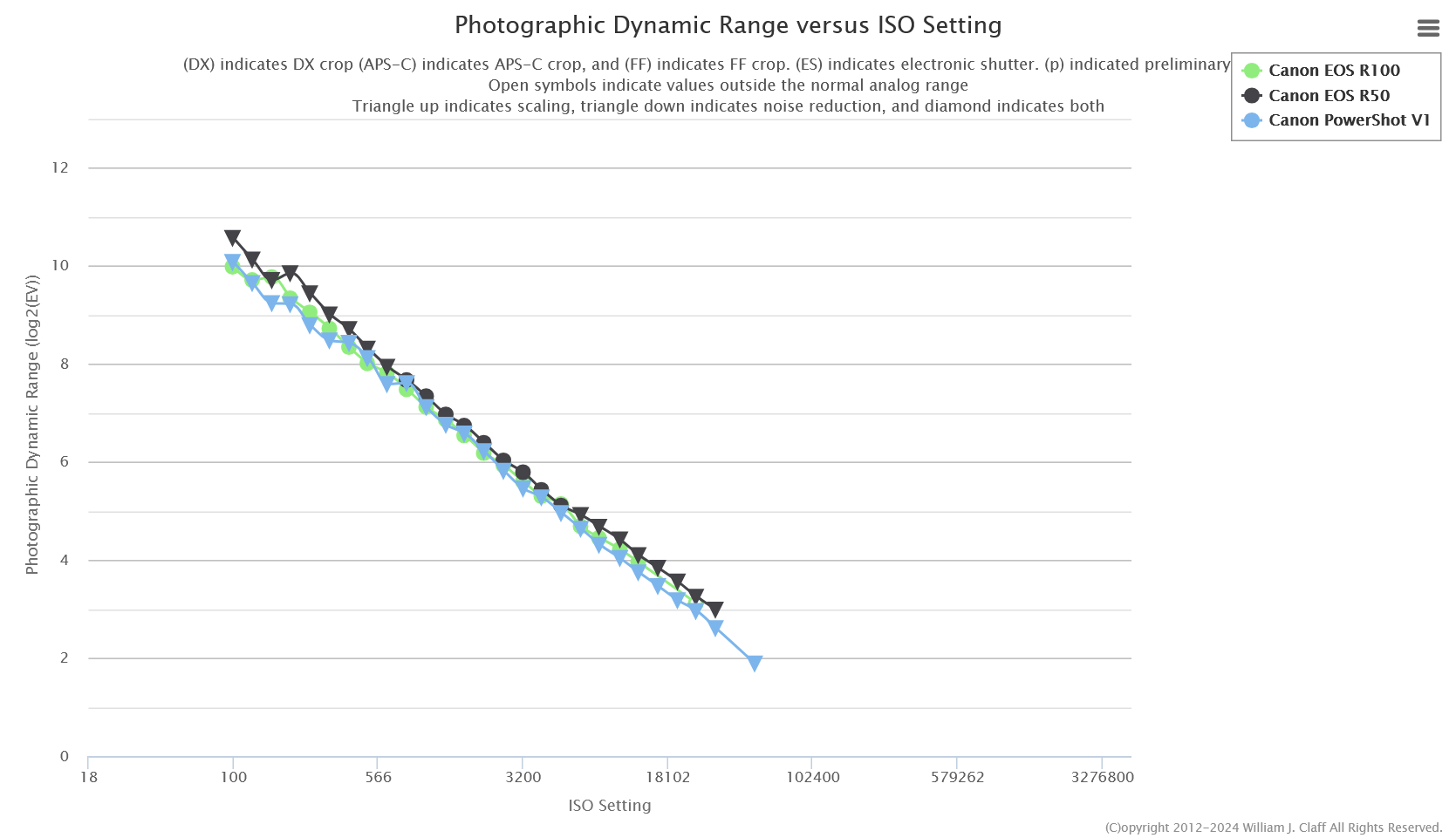 Photons to Photosが「PowerShot V1」のダイナミックレンジテスト結果を公開。コンパクトカメラとしては優れたパフォーマンスを発揮し、APS-Cミラーレスに近い性能のカメラとなっています。