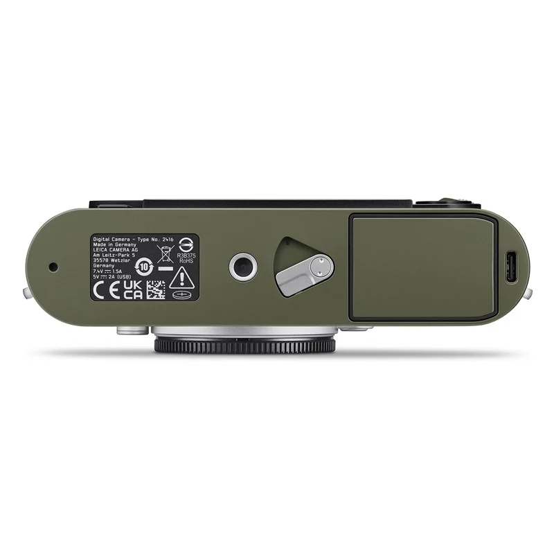 人気のオリーブグリーンペイントとレザー仕上げに、シルバーのアクセントが洗練された印象を添えます。赤いライカロゴを意図的に省いたデザインや、クラシックな刻印が、控えめながらも存在感のある美しさを演出。技術面ではライカM11-Pと同等の性能を備え、最高水準の撮影性能と操作性を実現します。