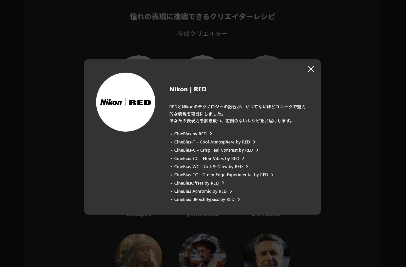 ニコンが予告していたRED監修のイメージングレシピ「CineBias」9種類を配信開始しました。イメージングレシピとしては珍しいモノクロプリセットもある模様。Z50IIなどZR以外にも適用可能。