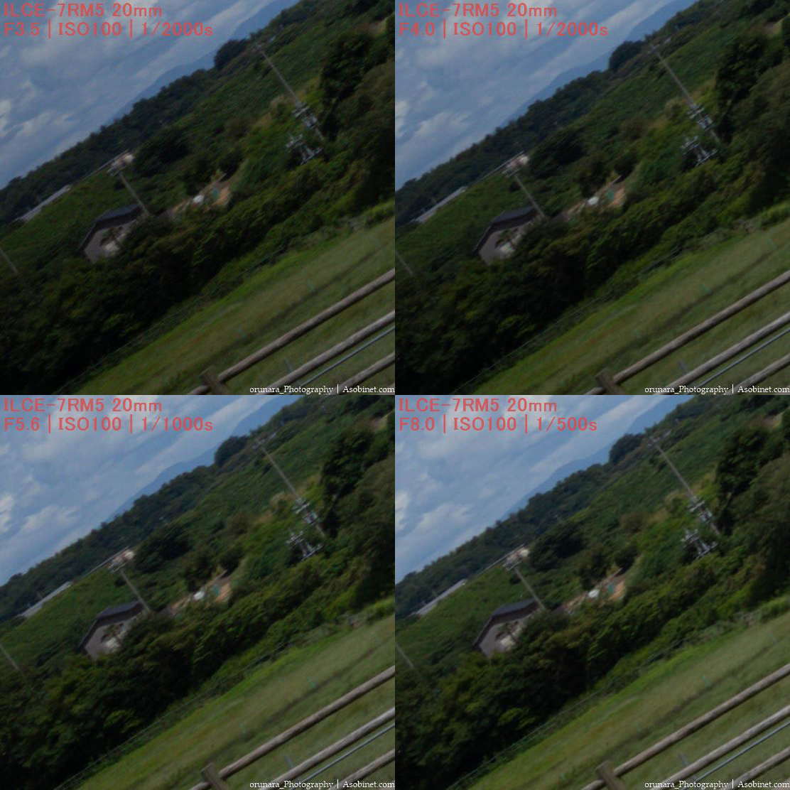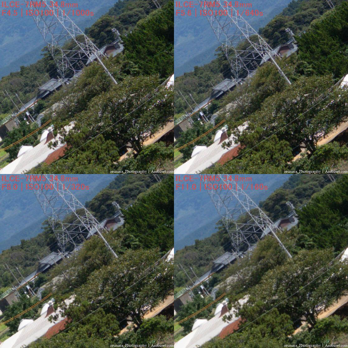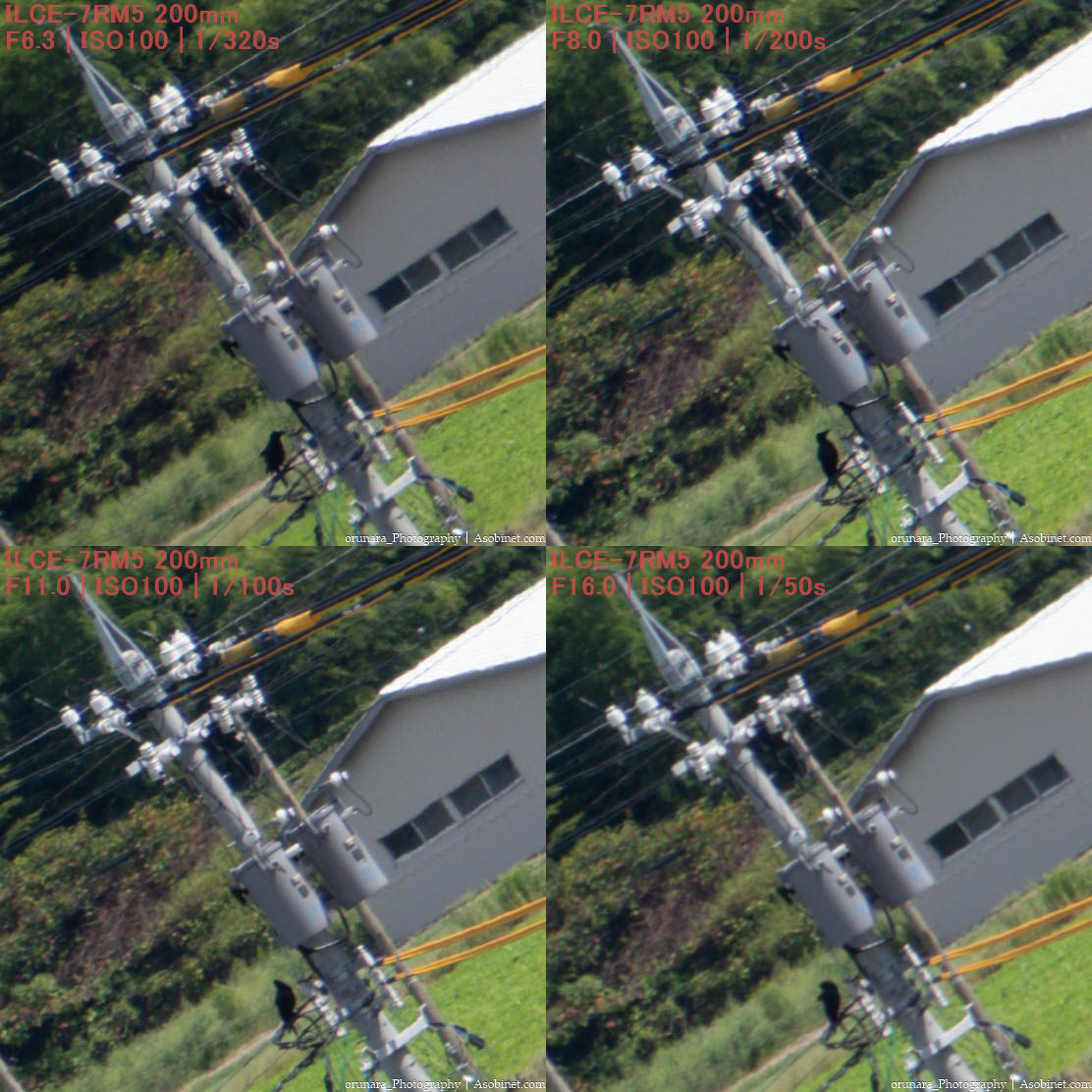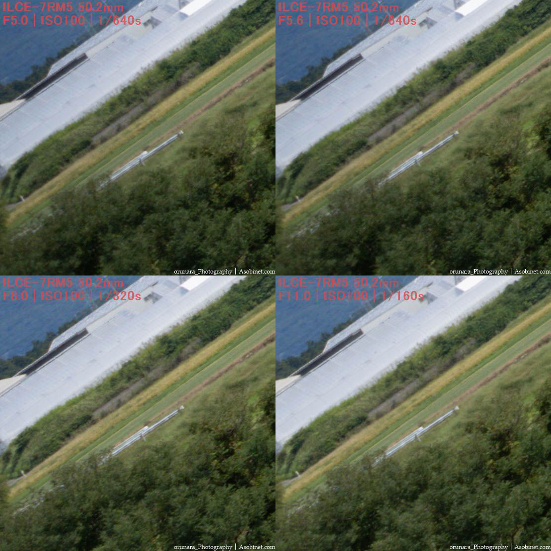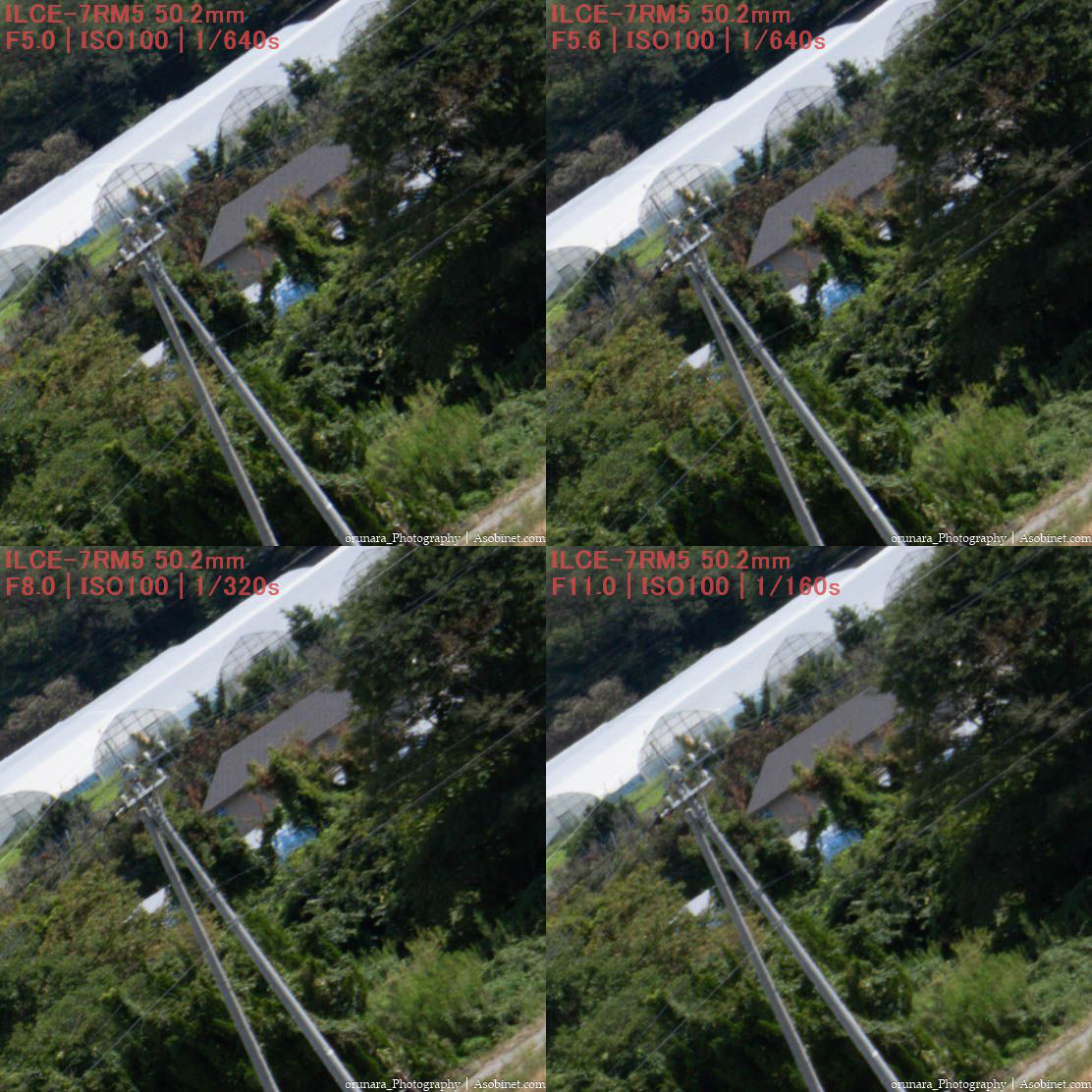 周辺部は中央と比べるとややソフトですが、絞ると少し改善します。絞っても中央に追い付くことはありませんが、良像と言える範囲内で問題無し。