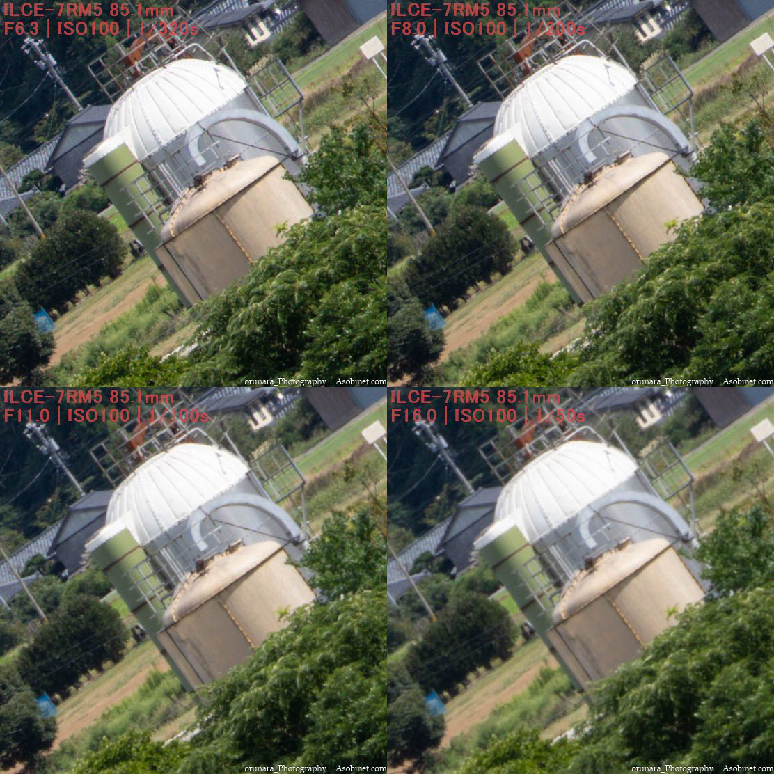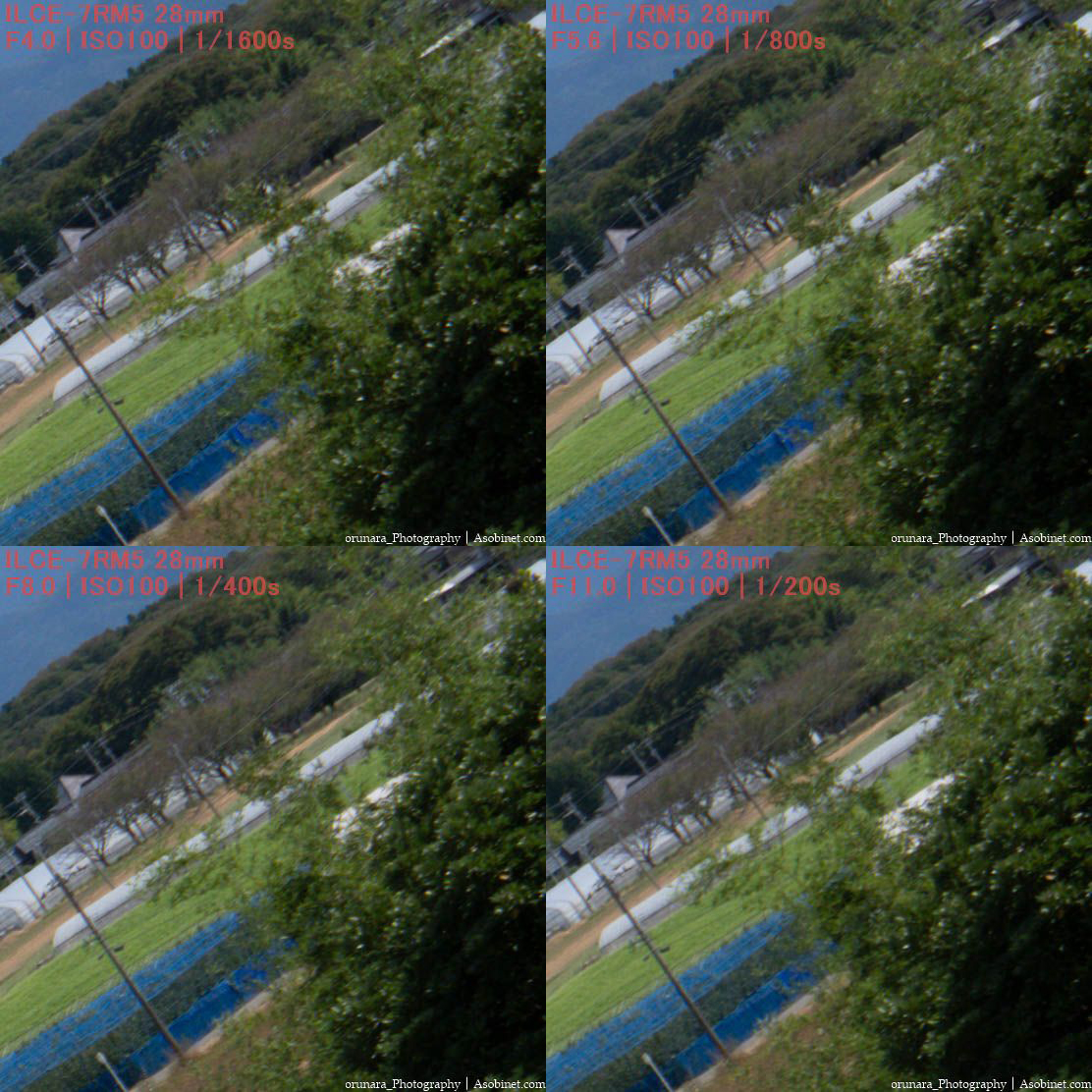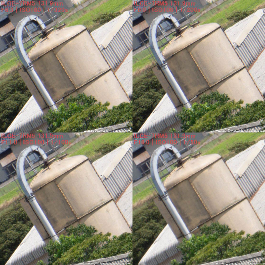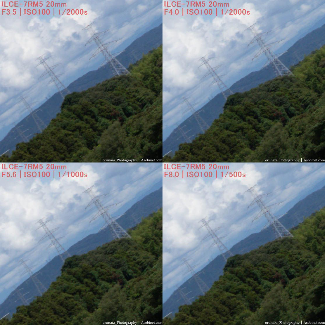 周辺部は中央と比べるとややソフトですが、絞ると少し改善します。絞っても中央に追い付くことはありませんが、良像と言える範囲内で問題無し。