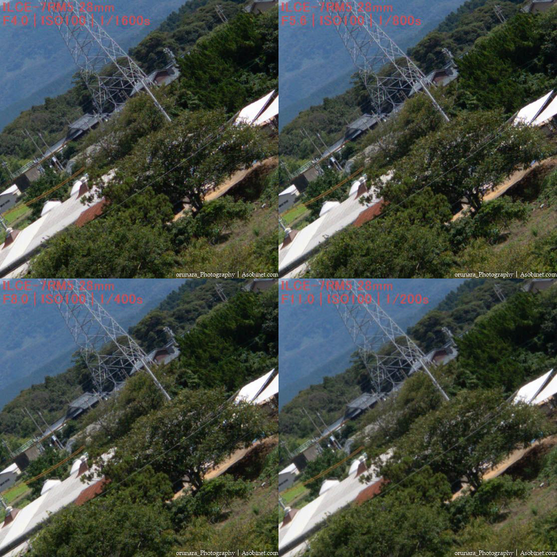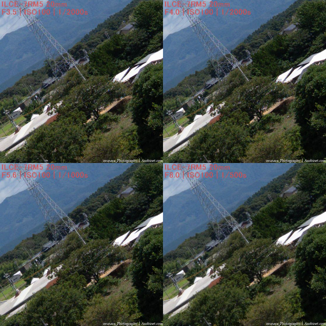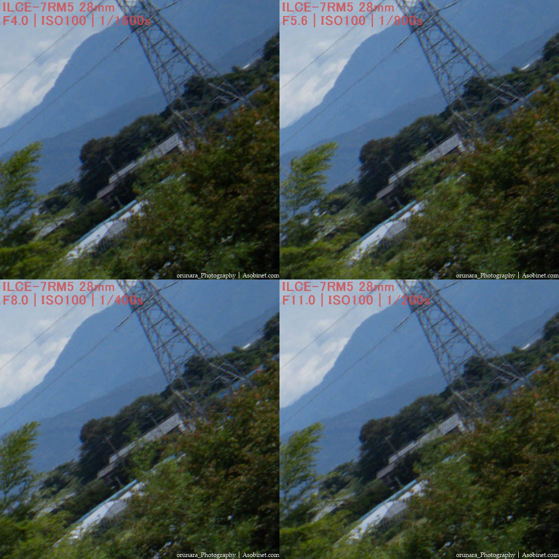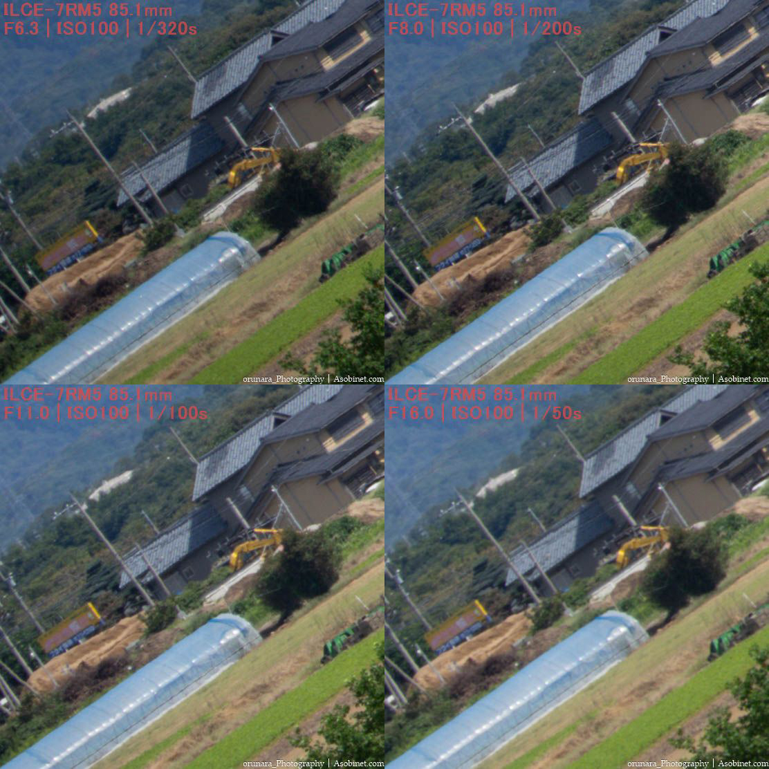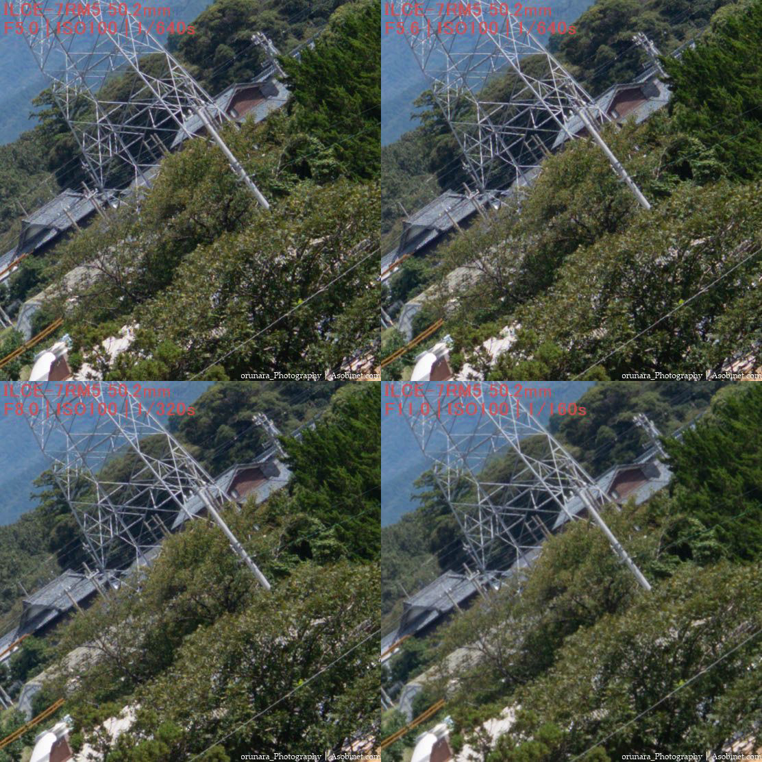 周辺部は中央と比べるとややソフトですが、絞ると少し改善します。絞っても中央に追い付くことはありませんが、良像と言える範囲内で問題無し。