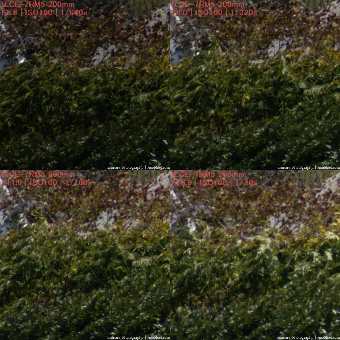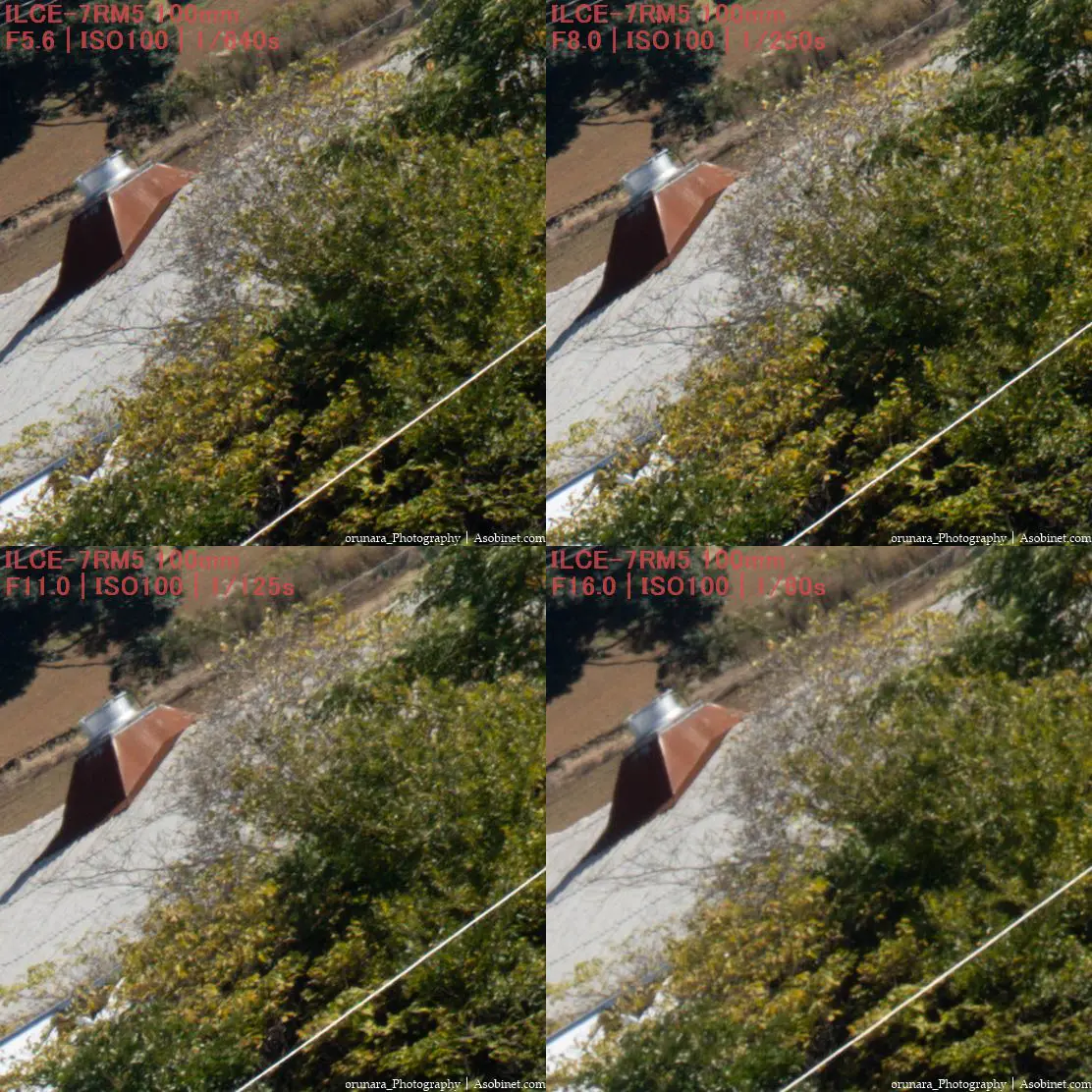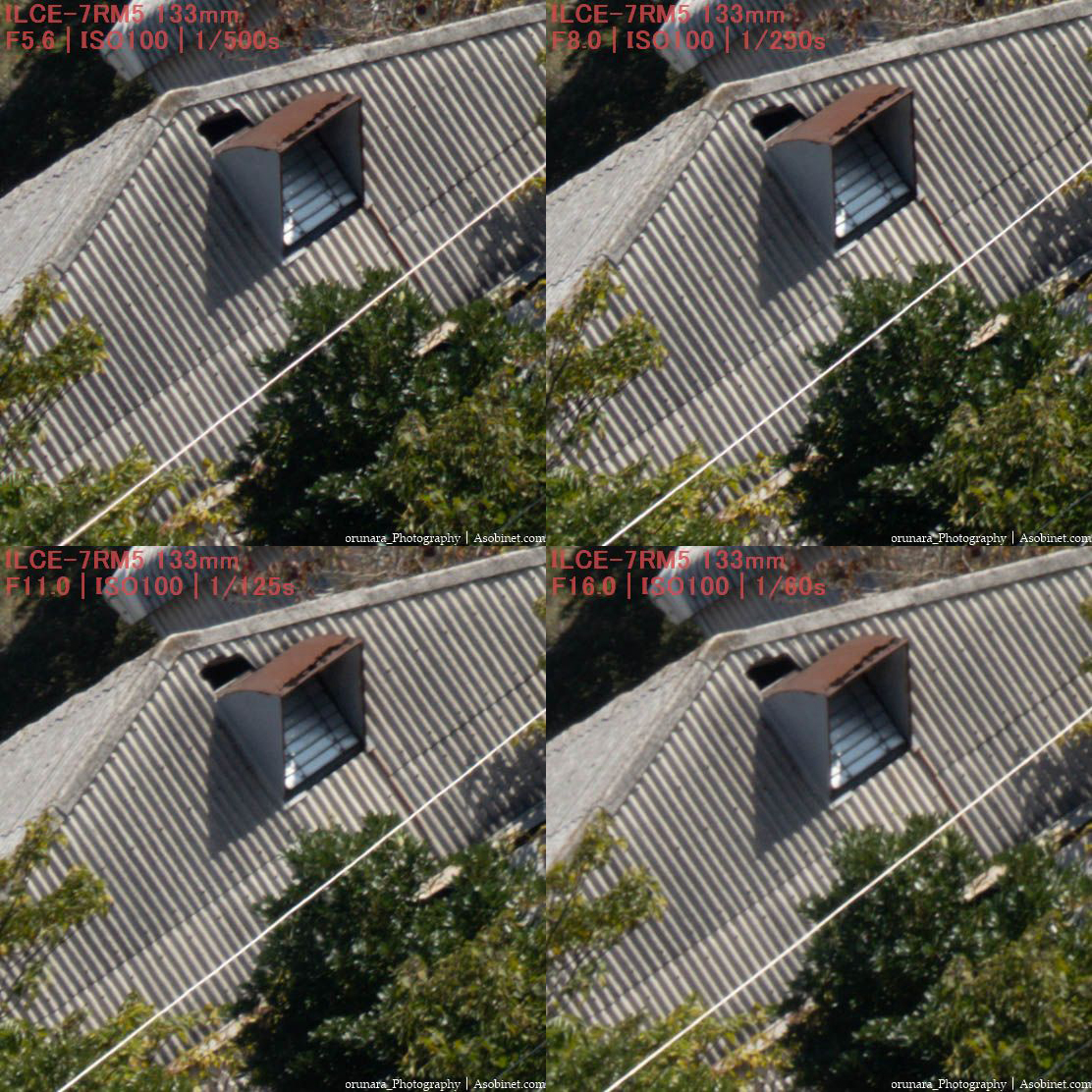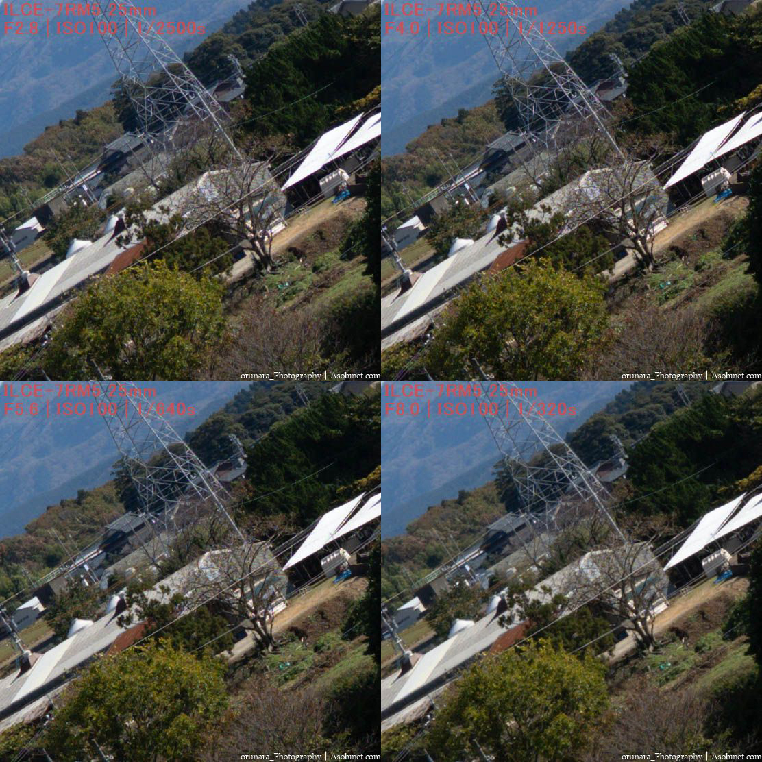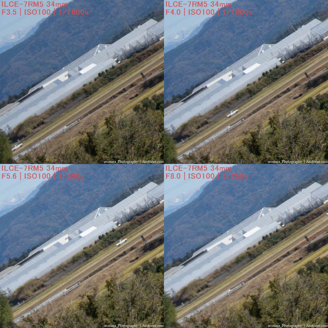 • 中央:絞り開放からピークの画質で、絞り値による大きな変化は無し。