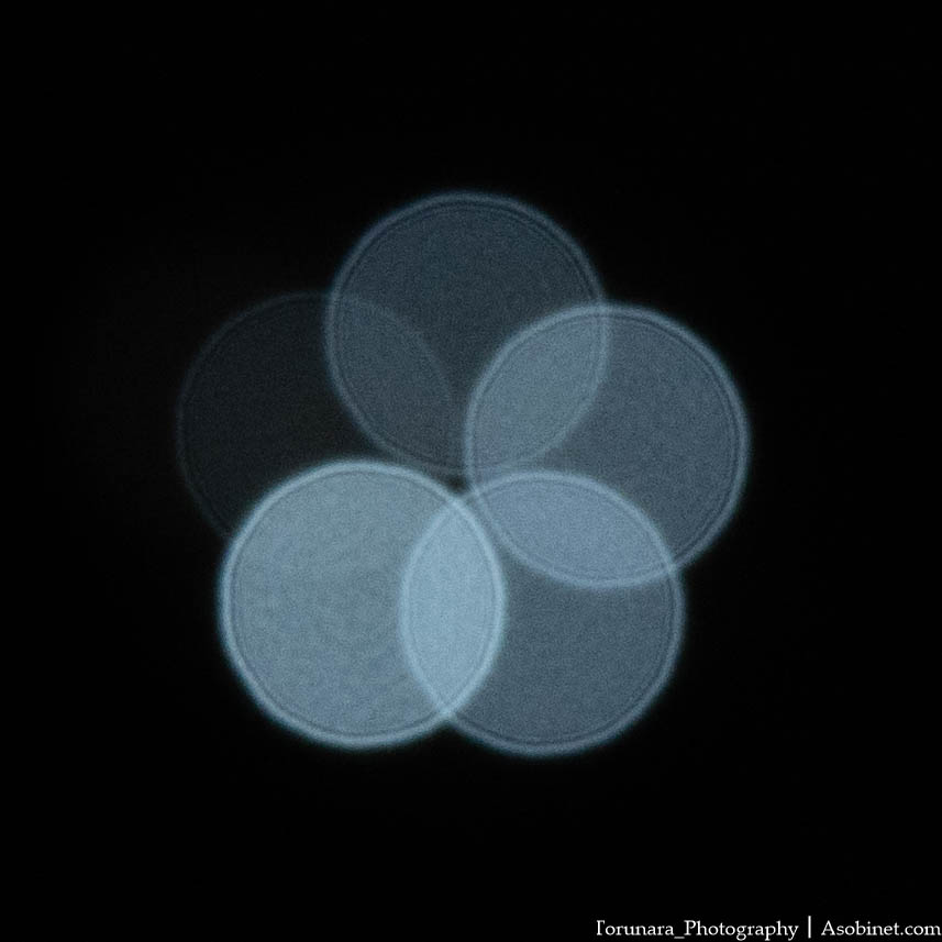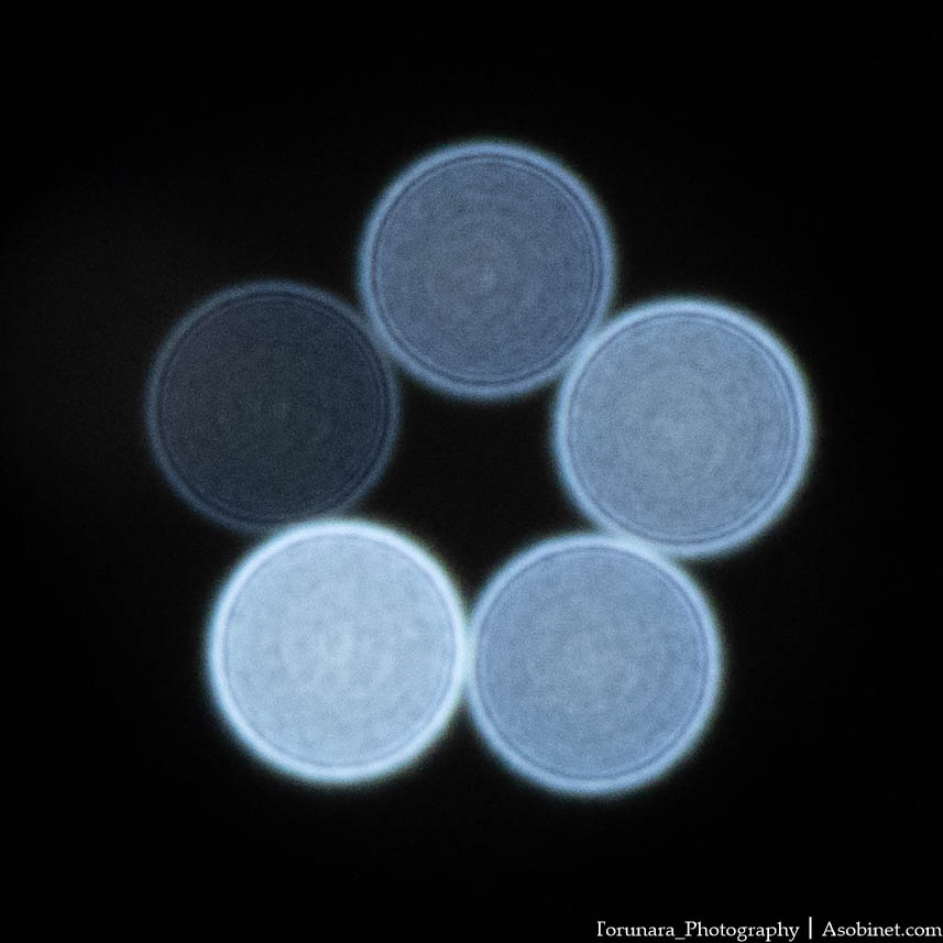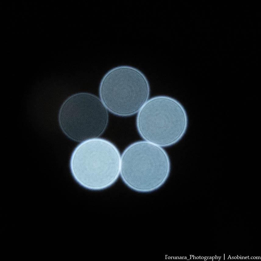 ピント前後の玉ボケに大きな違いはありません。球面収差は良好に補正されています。