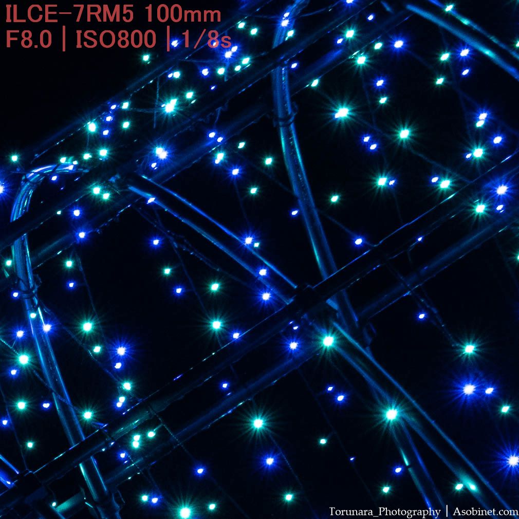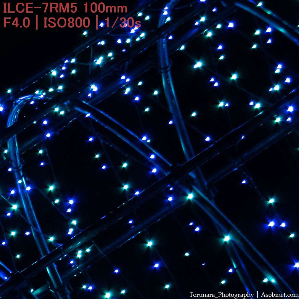 コマ収差・非点収差とは主にフレーム四隅で点像が点像として写らないこと。例えば、夜景の人工灯や星、イルミネーションなど。日中でも木漏れ日など、明るい点光源で影響を受ける場合あり。この問題は後処理が出来ないため、光学的に補正する必要あり。
