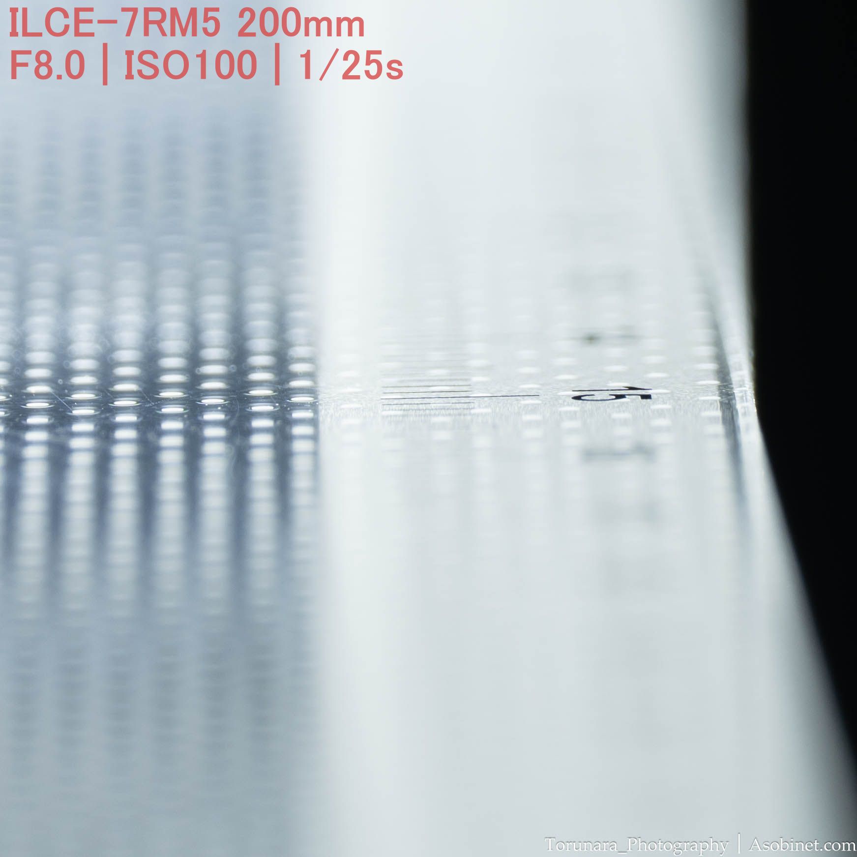 最近のレンズで目立つ像面湾曲を残したレンズは少ないものの、近距離では収差が増大して目立つ場合があります。と言っても、近距離でフラット平面の被写体を撮影する機会は少ないと思われ、像面湾曲が残っていたとしても心配する必要はありません。