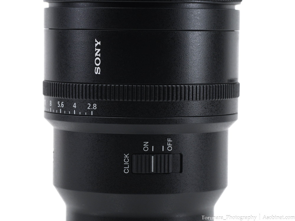 右側面には絞りリングのクリック・デクリックを設定できるスイッチを搭載。
