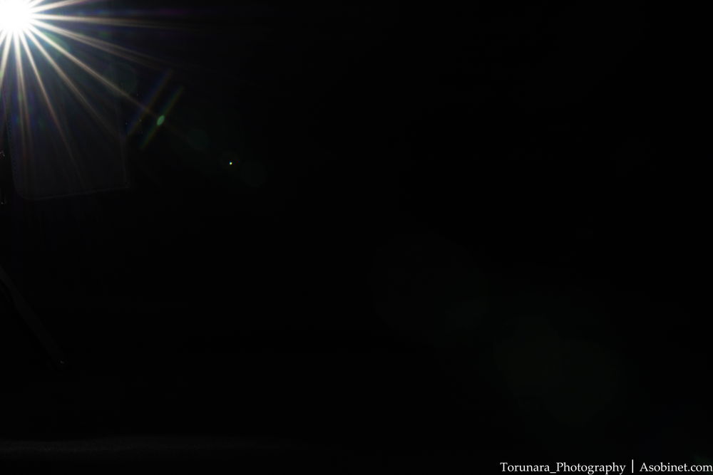 光源をフレーム隅に移動した場合も同様、絞るとやや目立つゴーストが発生します。