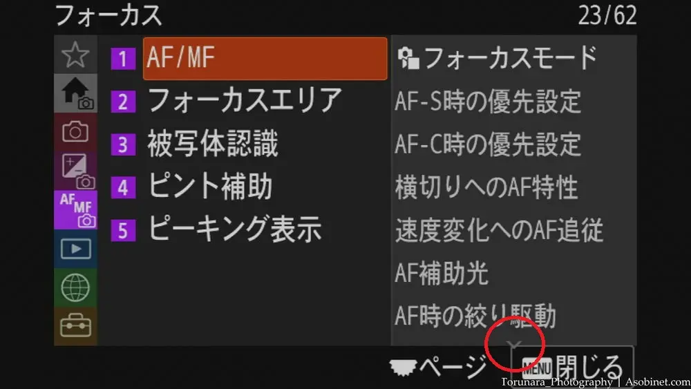 「AF/MF」「フォーカスエリア」は設定項目が多すぎるので、カテゴリを細分化したり、設定を統合するなり、ページを分けたほうが見やすかったはず。