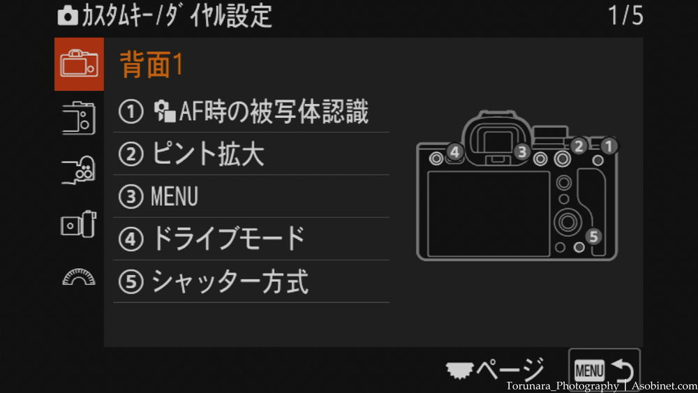 旧メニューでは左右にページ移動する形式でしたが、上下に図付きのタブが配置され、よりナビゲートしやすくなっています。カスタマイズ中は通常のメニュー画面のような構造から目当ての設定項目を探すことが出来ます。