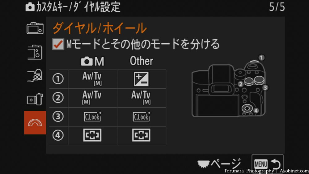 マイダイヤルに登録することなく、通常時のダイヤルカスタマイズに対応。計4カ所のダイヤル・ホイールをカスタマイズすることが可能。非常に自由度が高い。P/A/Sモード時とMモード時のダイヤル操作を分けることができるのもGood。