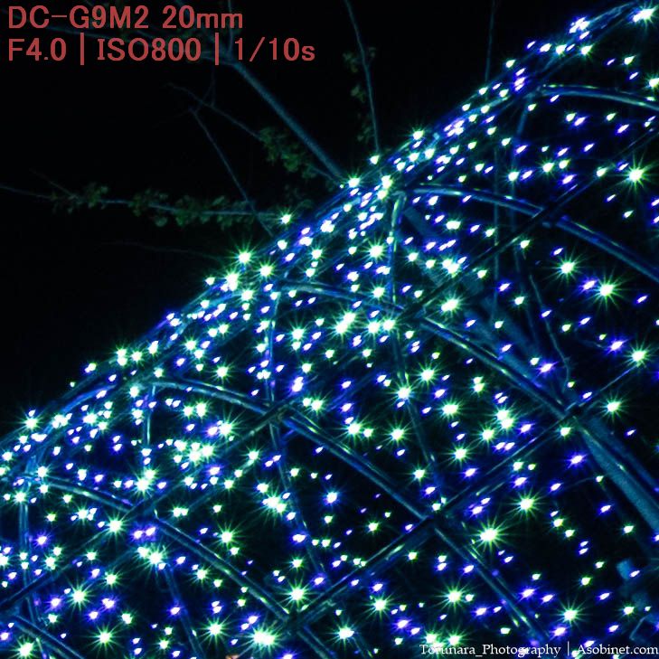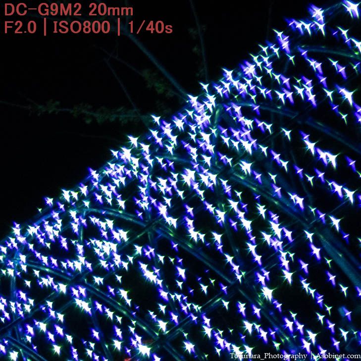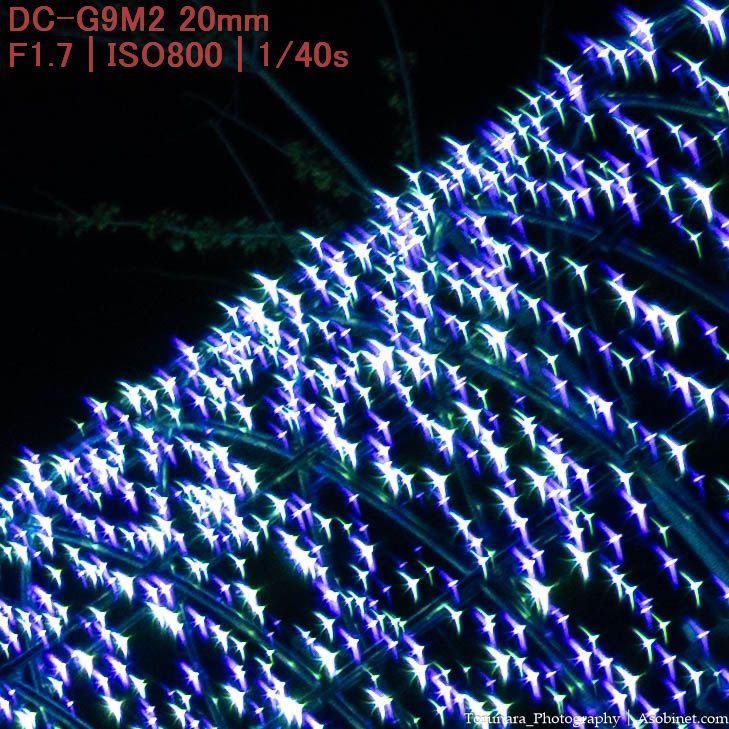 より気を付けたいのはコマ収差と歪曲収差。歪曲収差はレンズ補正で自動的に修正されるものの、コマ収差は絞るしかありません。夜景やイルミネーションなど、点光源が多い場合は注意が必要です。風景撮影でも木漏れ日などが点光源となる可能性あり(F1.7を使う機会は少ないと思いますが…)。