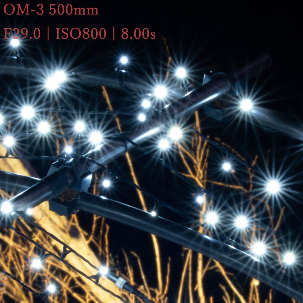 小絞りでシャープな光条が得られますが、回折の影響が非常に強い領域。