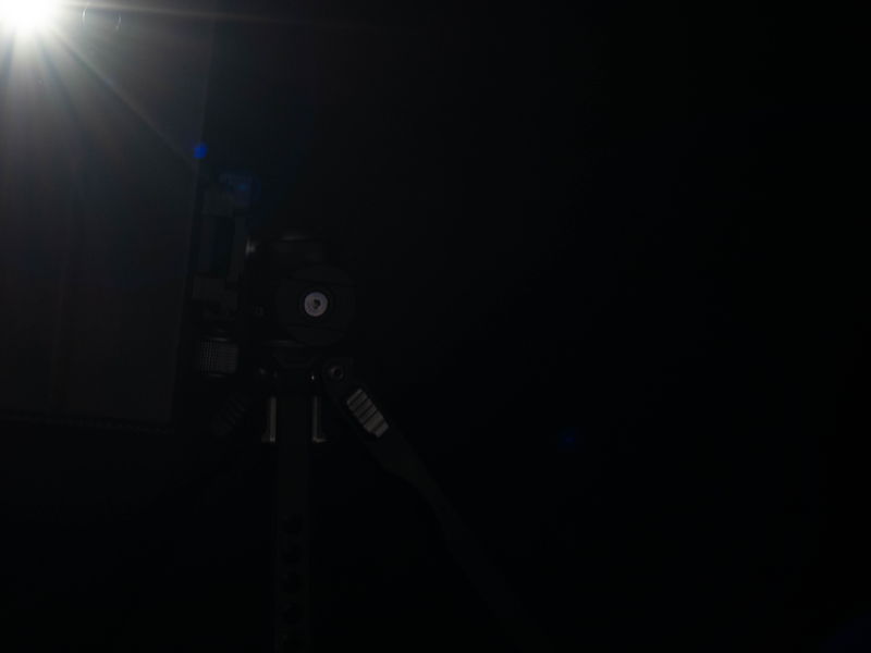 光源を隅に移動すると、F4.5での影響は軽微。絞るとゴーストが少し増加します。