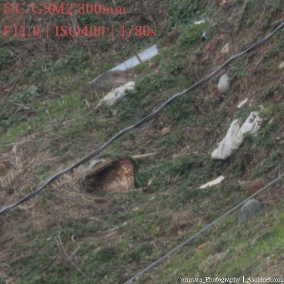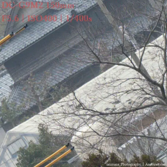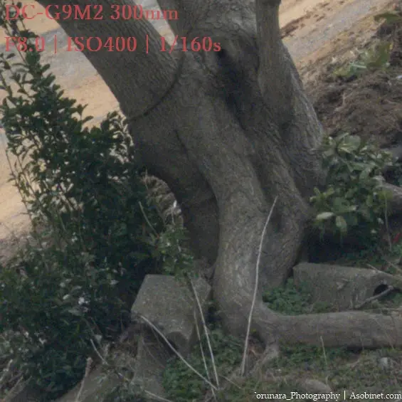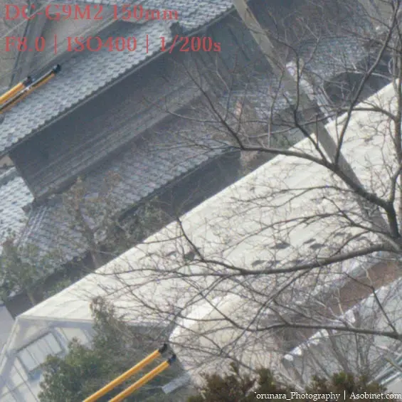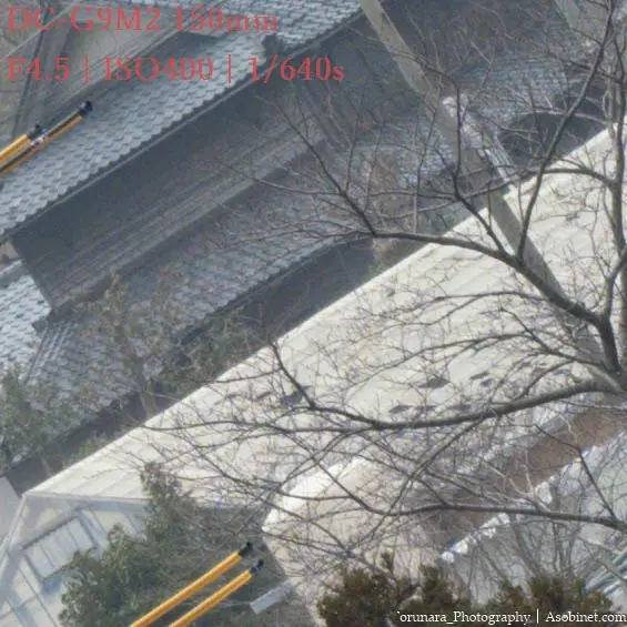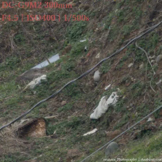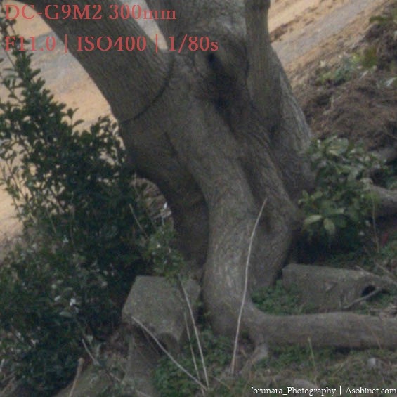 2400万画素のG9M2使用時、遠景撮影で300mm F4 PROとの顕著な差はありません。ハイレゾモードを使わない限り、単焦点並みの性能と言っても過言ではないと思います。