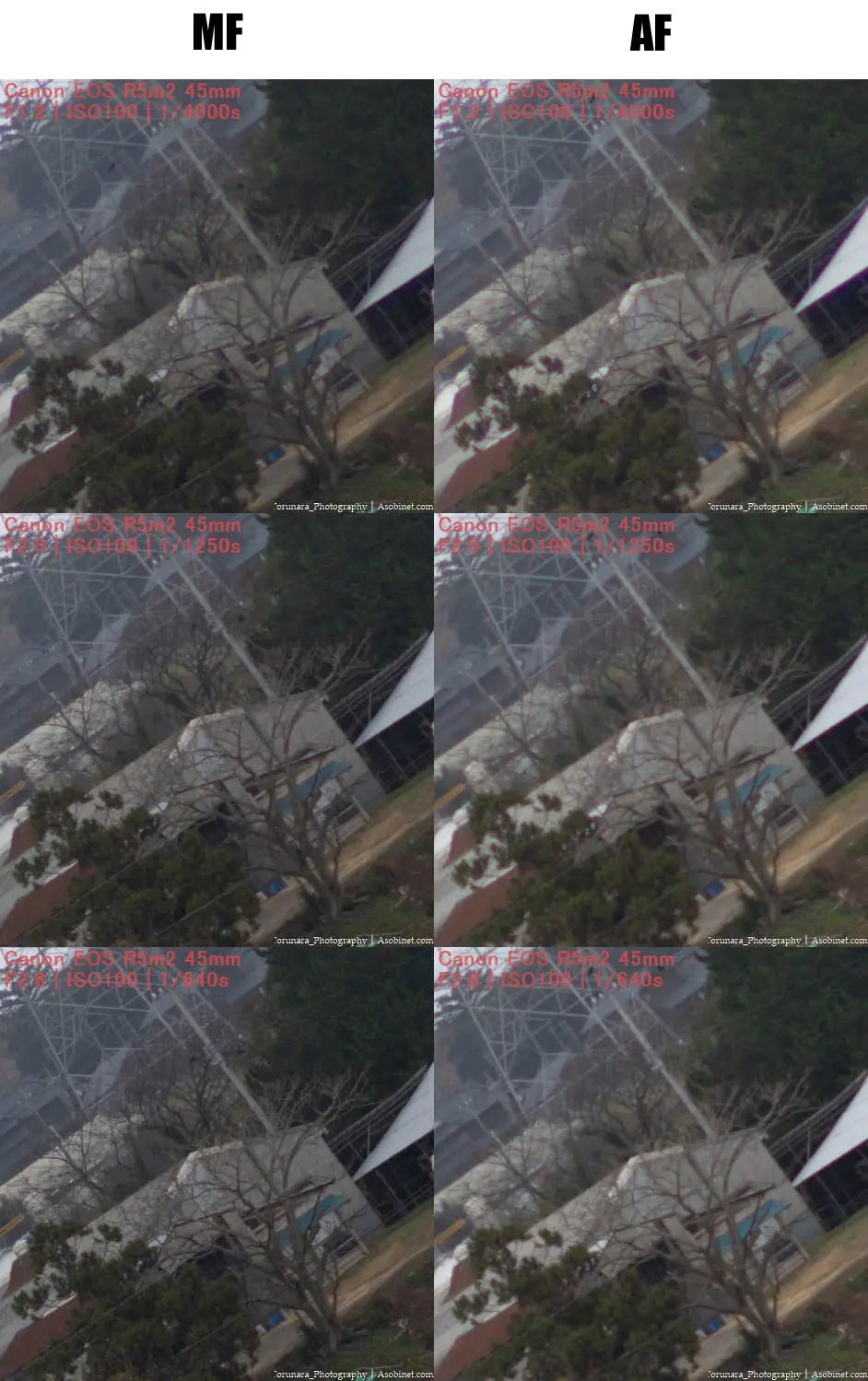 「RF45mm F1.2 STM」のレビュー第三弾 遠景解像編を公開。解像チャート編と同じくフォーカスシフトの影響があるものの、ピントが合った場合は広い範囲で良好な結果が得られるようです。