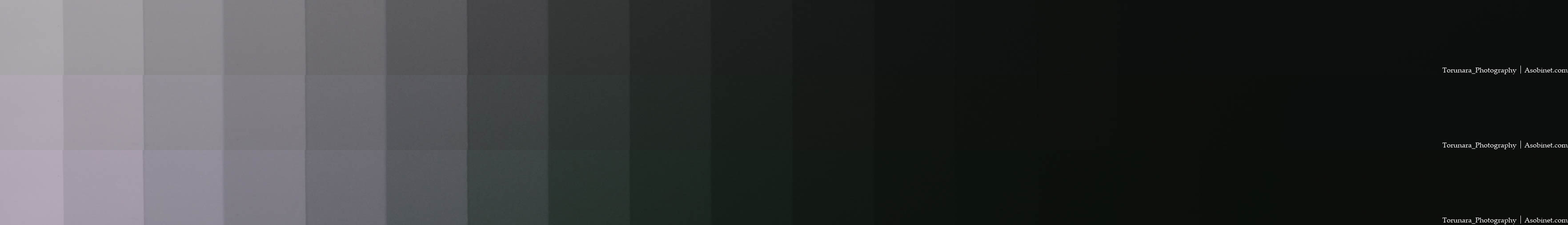 以下のグレーチャートは【シネマ調 イエロー】の調色のみ調整「弱/中/強」して現像したもの。