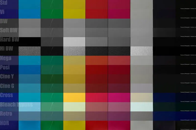 一般的なカラー・モノクロのほか、フィルム調・シネマ調・フィルター径の仕上がりを含めた14種類に対応。前モデル比で、映画のルックをイメージした「シネマ調 イエロー」「シネマ調 グリーン」が追加されています。