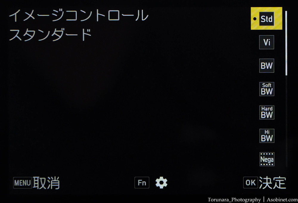 選択肢は増えましたが、「一般的な」カラーが少なめ。カスタムイメージコントロール枠で、彩度やコントラストの増減を調整した仕上がりを記憶しておくと良いかもしれません。