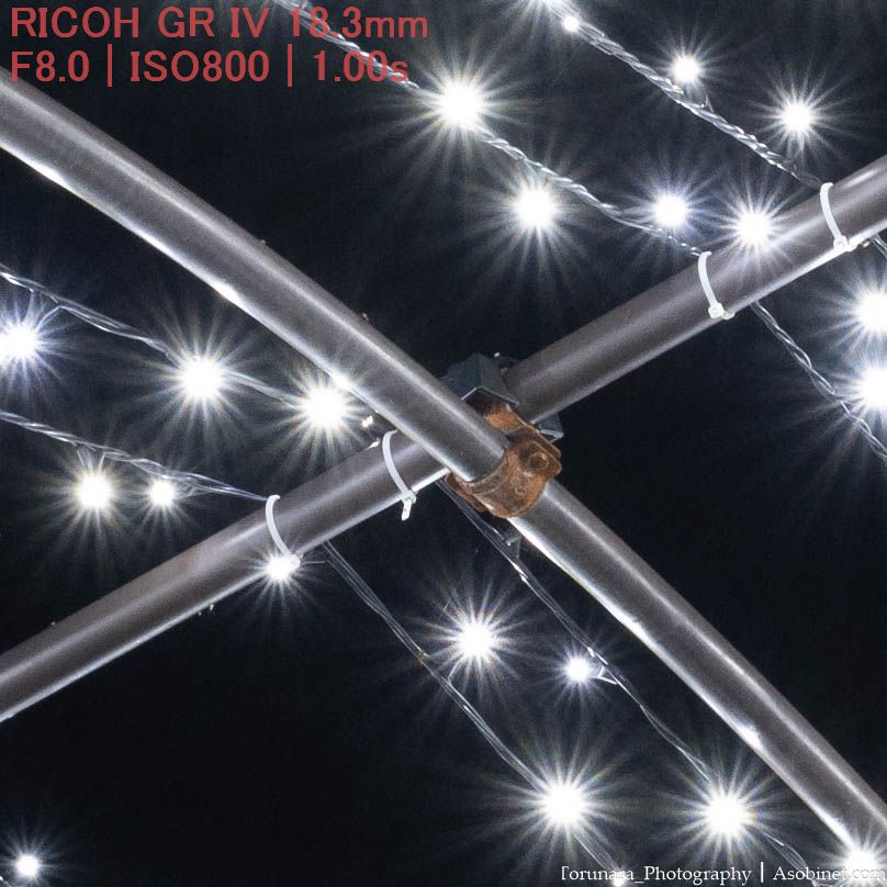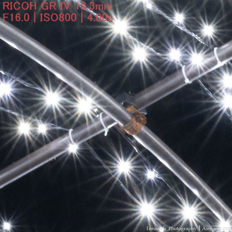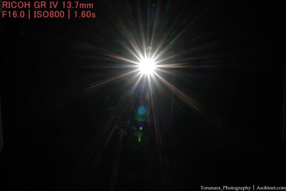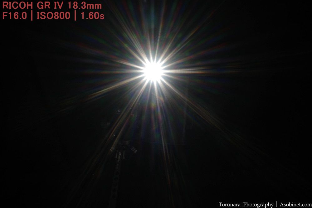 F11-F16付近で明瞭な光条へと変化します。ただし、回折の影響とバランスを取ることが出来るF8ではシャープな光条が得られません。